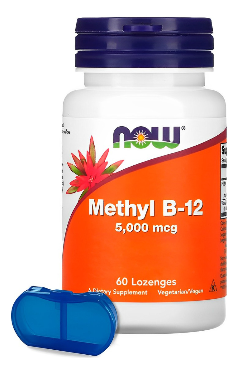 Metil B-12 5.000mcg Now Foods Methyl 60 Pastilhas Produto Importado Original + Porta Cápsulas