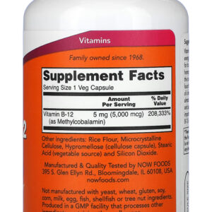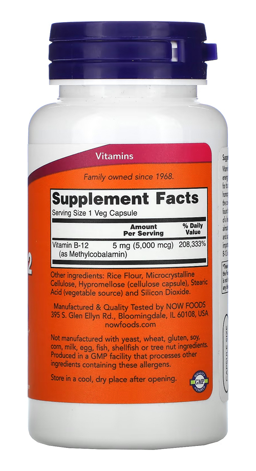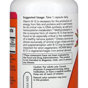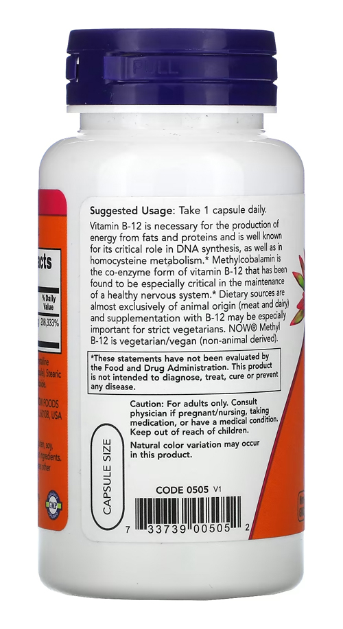 1. Absorção Eficiente e Rápida: O Metil B-12 da Now Foods em cápsulas vegetais oferece uma absorção eficiente, sendo uma escolha ideal para quem busca um suplemento de fácil assimilação. Cada cápsula contém 5000mcg de Metilcobalamina, uma forma altamente biodisponível da vitamina B-12.