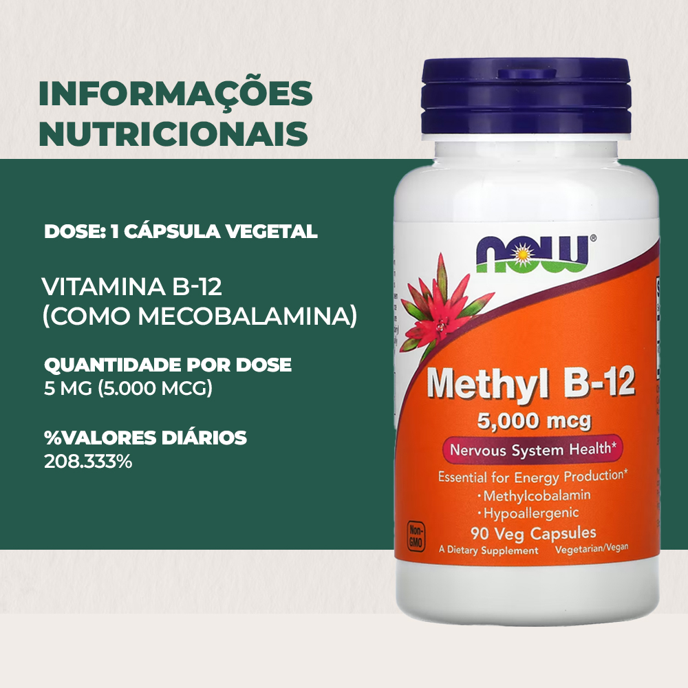 Metil B-12 5.000mcg Now Foods Methyl 90Veg Cáps Produto Importado