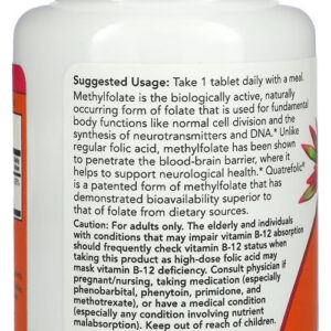 Metilfolato Methyl 1000mcg Now Foods 90 Tablets / No Brasil O metilfolato é a forma de folato biologicamente ativa e natural que é usada para funções corporais fundamentais. Ao contrário do ácido fólico normal, o metilfolato demonstrou penetrar na barreira hematoencefálica, onde atua ajudando no apoio ao bem estar. Dito de outra maneira, é uma forma patenteada de metilfolato que demonstrou biodisponibilidade superior à do folato de fontes alimentares, com esta formula potente você pode facilmente complementar sua dieta alimentar com as quantidades necessárias desta substância. Outros Ingredientes: Celulose Microcristalina, Ácido Esteárico (fonte vegetal) e Dióxido de Silício. Fabricado sem ingredientes de trigo, glúten, soja, leite, ovo, peixe, marisco, nozes ou gergelim. Sugestões de uso: Tome 1 comprimido por dia com uma refeição. Cuidados: Apenas para adultos, busque orientação se estiver grávida ou amamentando antes de antes de usar este produto. Mantenha fora do alcance de crianças Armazenar em local fresco e seco após a abertura. Dimensões: 4,7 x 4,7 x 8,9cm Peso: 0,036 Itens inclusos: 1x Frasco com 90 tablets VIDE VALIDADE