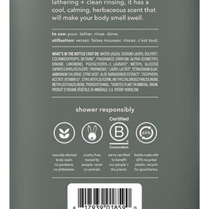 Sabonete líquido masculino Method, sem zimbro, sálvia, parabenos e ftalatos, 18 FL Oz (pacote com 6) – Contém (1) frasco de 18 onças de sabonete líquido líquido em gel – Sabonete líquido com produtos de limpeza à base de plantas – Espuma rápida e enxágue limpo – Feito sem parabenos ou ftalatos – Fragrância sofisticada e inspirada na natureza – Livre de crueldade. Não testado em animais – Terroso e calmante, esse aroma herbáceo é como um cheiro de verduras perfumadas recém-cortadas – Frasco (menos tampa) feito com 65% de plástico reciclado