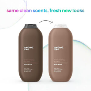 Sabonete líquido masculino Method, sândalo e vetiver, sem parabenos e ftalatos, 18 FL Oz (pacote com 6) – Contém (6) frasco de 18 onças de sabonete líquido em gel. – Sabonete líquido com produtos de limpeza à base de plantas. – De secagem rápida e enxágue limpo. – Feito sem parabenos ou ftalatos. – Fragrância sofisticada inspirada na natureza. – Livre de crueldade. Não testado em animais. – Suave e sedutor, esse perfume sutil combina um calor amadeirado com toques herbáceos frescos. – Frasco (sem tampa) feito com 65% de plástico reciclado.