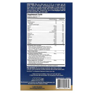 Misture um pacote em 5-6 fl. oz. de água e mexa delicadamente. O Secretagogue-Gold de Potência Clínica é mais eficaz quando tomado com o estômago vazio, de preferência 2 a 3 horas antes ou depois de uma refeição. Para obter melhores resultados, tome à noite com o estômago vazio, antes de dormir. Continue usando Secretagogue-Gold para benefícios de longo prazo. Somente uma vez ao dia.