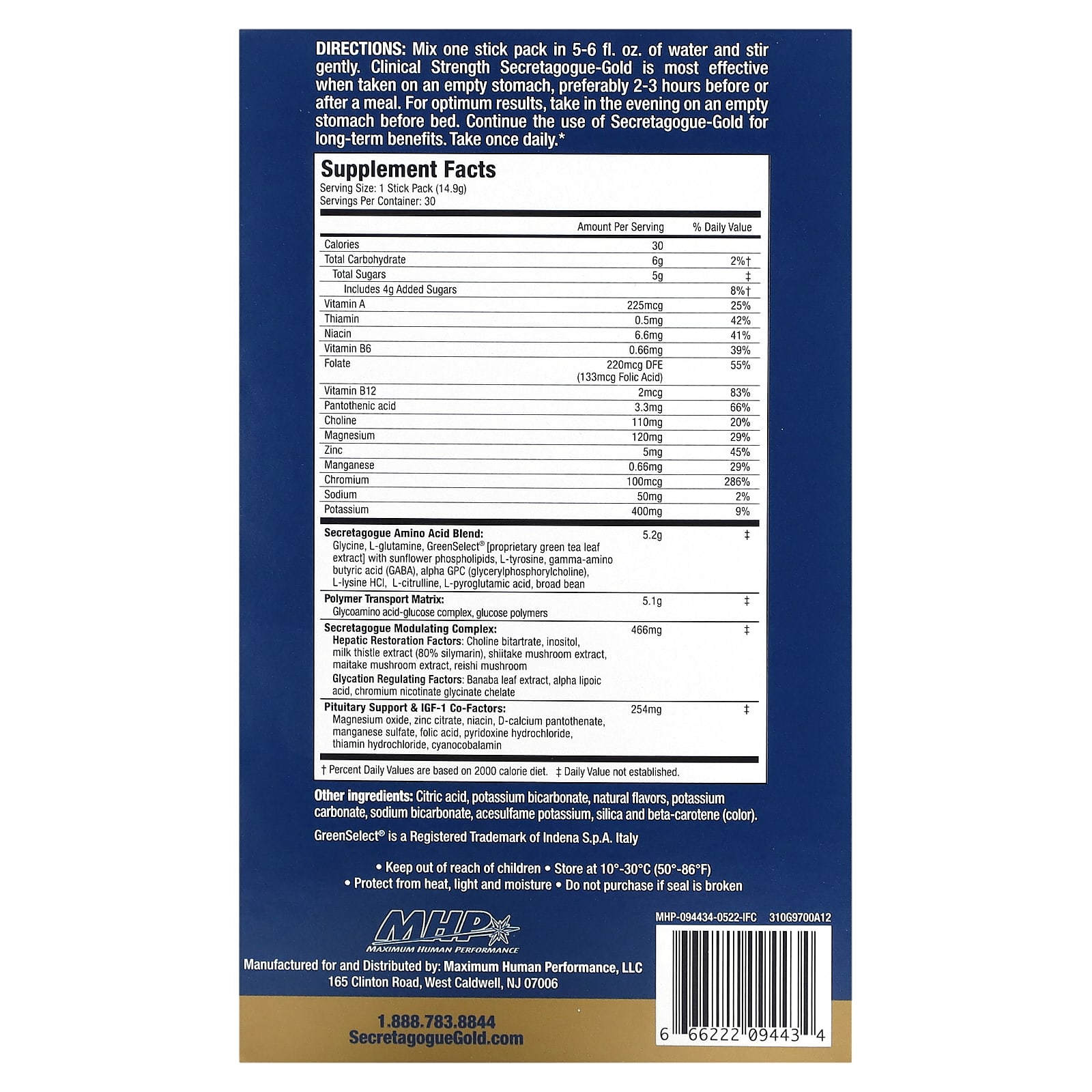MHP Secretagogue-Gold Laranja 30 Pacotes de Sticks 149 g (053 oz) Cada – Maximum Human Performance, LLC Suplementos Saúde do Homem Saúde da Mulher.