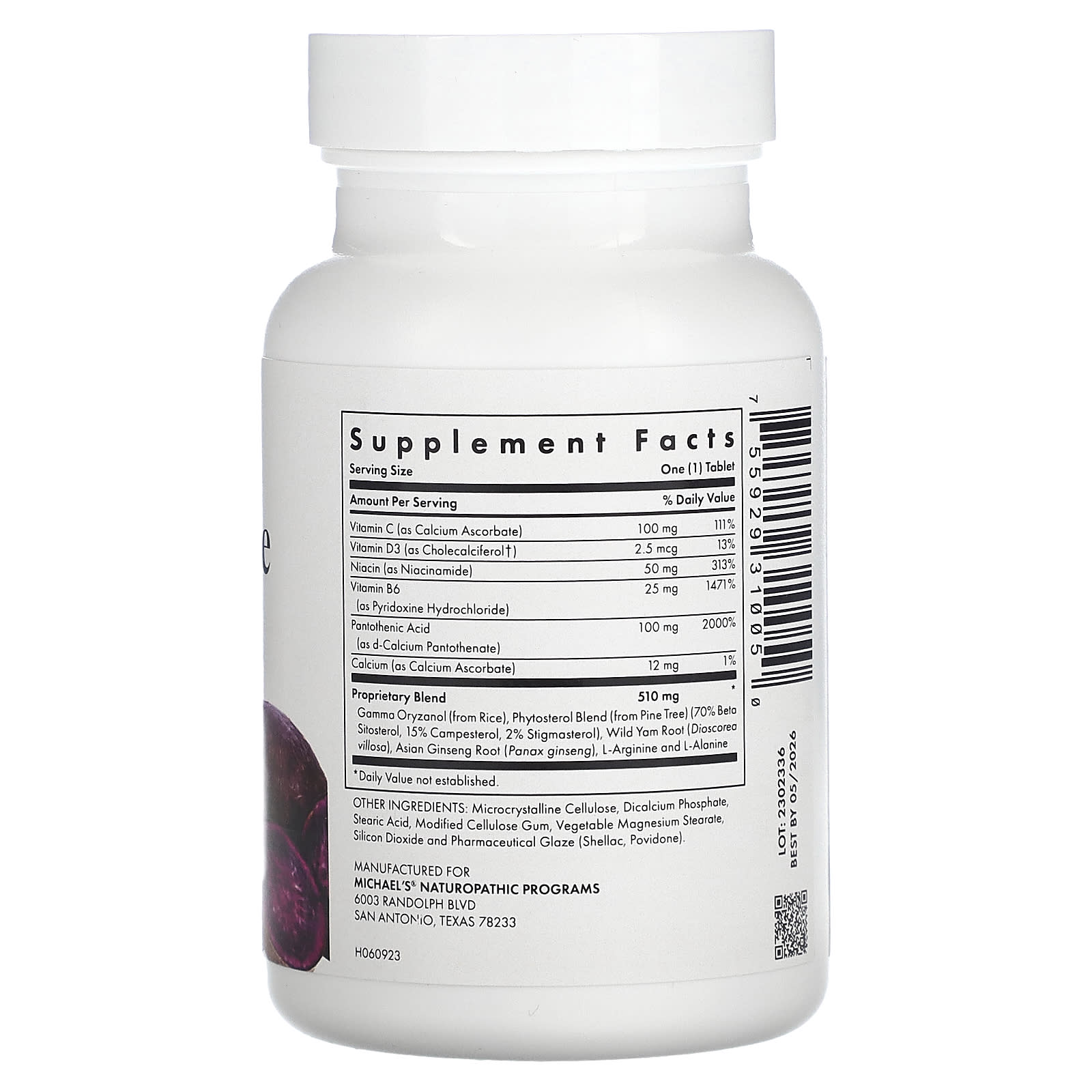 Gama Orizanol (de Arroz), Mistura de Fitosteróis (de Pinheiro) (70% de Beta Sitosterol, 15% de Campesterol, 2% de Estigmasterol), Raiz de Inhame Selvagem (Dioscorea villosa), Raiz de Ginseng Asiático (Panax ginseng), L-Arginina e L -Alanine