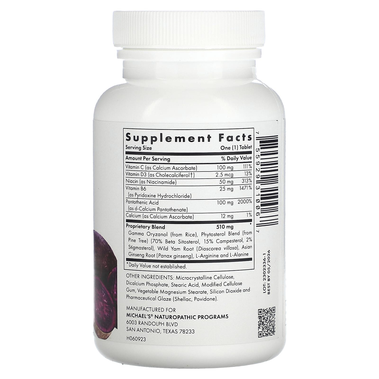 Gama Orizanol (de Arroz), Mistura de Fitosteróis (de Pinheiro) (70% de Beta Sitosterol, 15% de Campesterol, 2% de Estigmasterol), Raiz de Inhame Selvagem (Dioscorea villosa), Raiz de Ginseng Asiático (Panax ginseng), L-Arginina e L -Alanina Gama Orizanol (de Arroz), Mistura de Fitosteróis (de Pinheiro) (70% de Beta Sitosterol, 15% de Campesterol, 2% de Estigmasterol), Raiz de Inhame Selvagem (Dioscorea villosa), Raiz de Ginseng Asiático (Panax ginseng), L-Arginina e L-Alanina