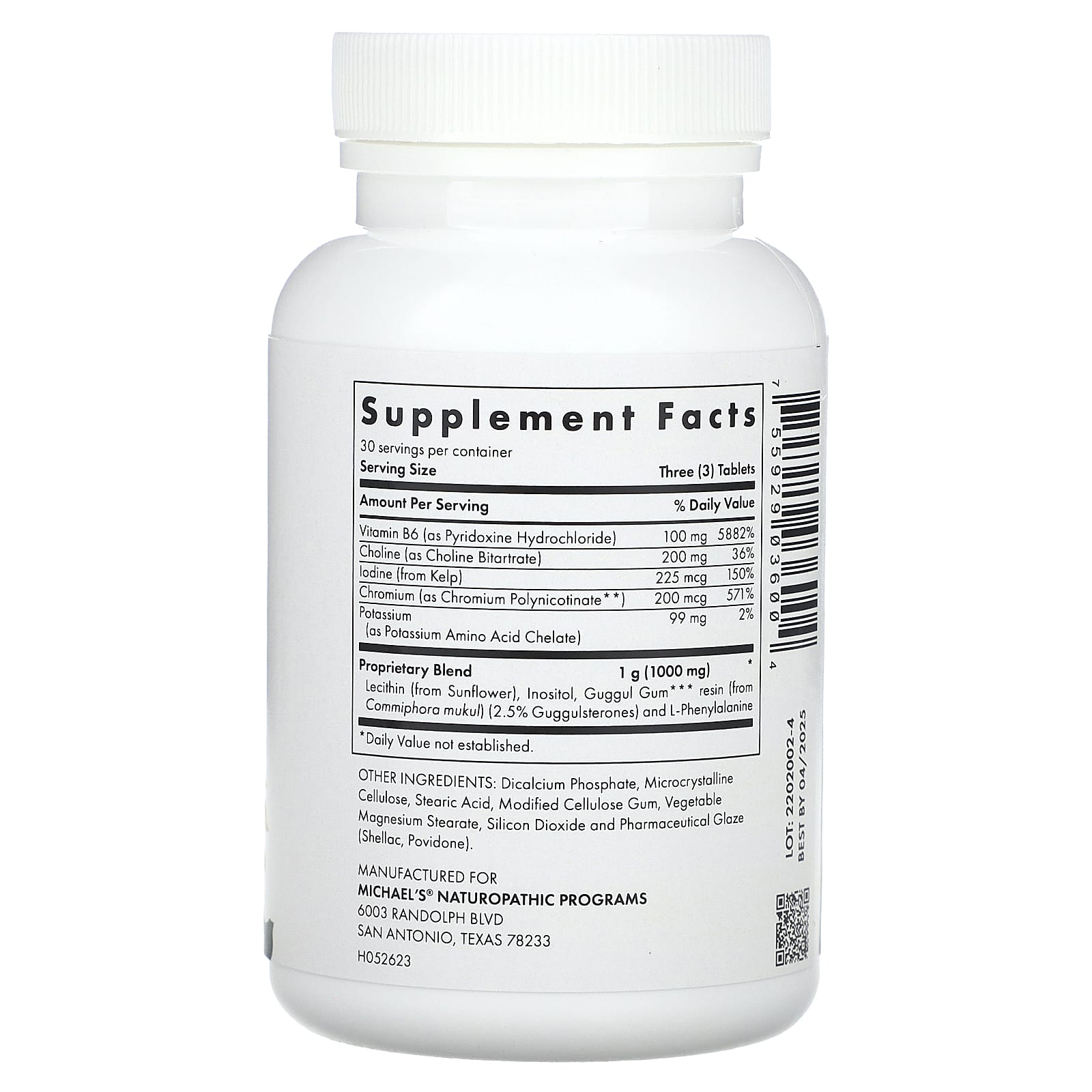 • Iodo, Destroços do Mar e Cromo – iodo para a tireoide. Naufrágio (uma alga), uma fonte de iodo e cromo para o metabolismo de carboidratos.