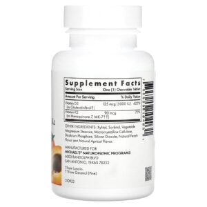 Michaels Health Vitamina D3 com Vitamina K2 Damasco 5.000 UI 90 Comprimidos Mastigáveis Vegetarianos – Michael’s Health Suplementos Vitaminas Vitamina D3 e K2 Vitamina K.