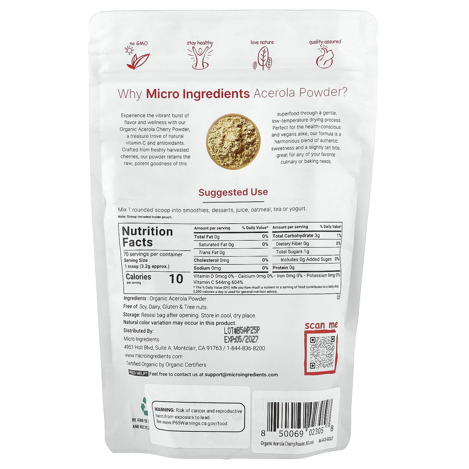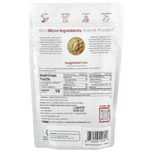 Micro Ingredients Acerola Orgânica em Pó 227 g (8 oz) – Micro Ingredients Suplementos Vitaminas Vitamina C.