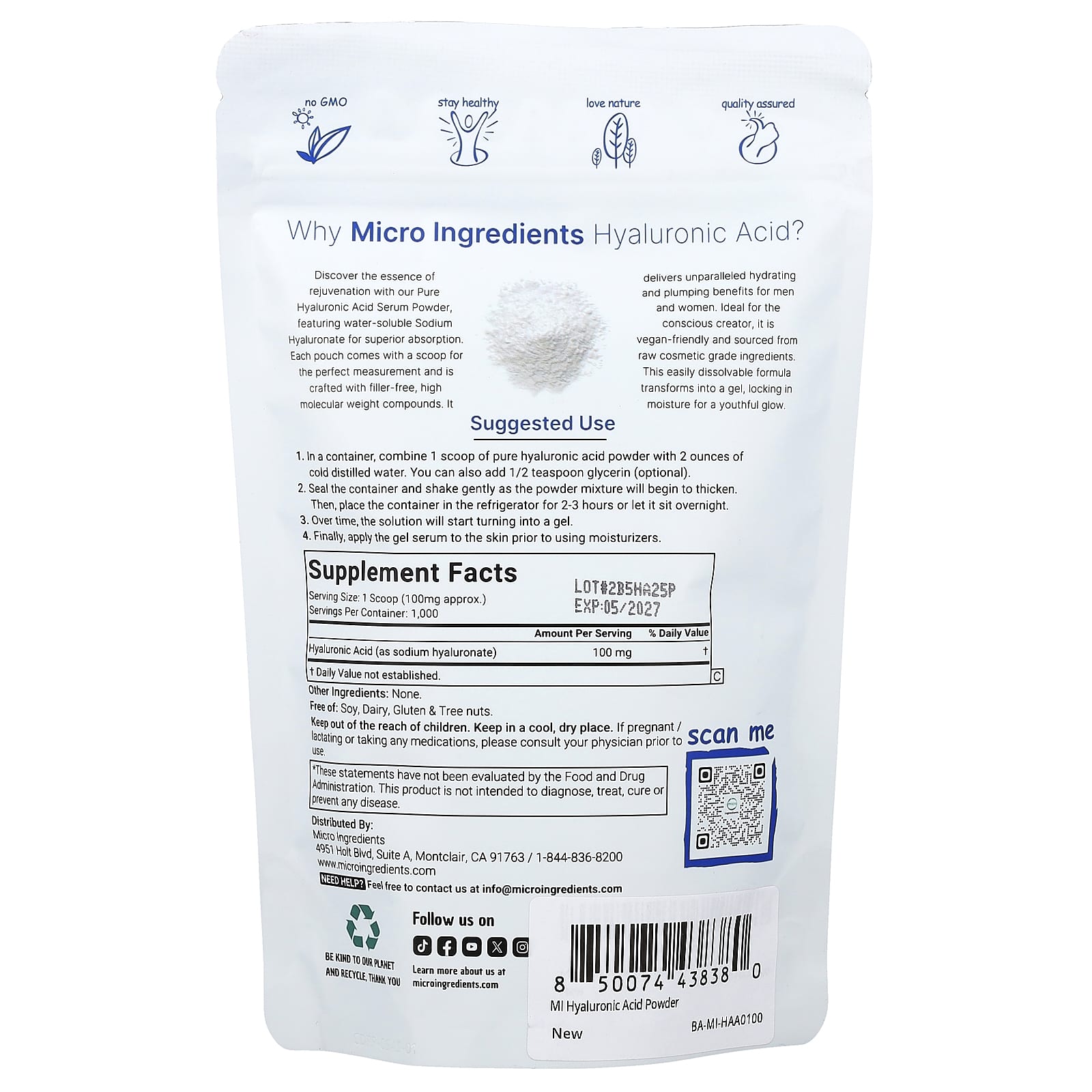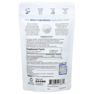 Micro Ingredients Ácido Hialurônico em Pó 100 g (352 oz) – Micro Ingredients Suplementos Cabelos, Pele e Unhas Ácido hialurônico.
