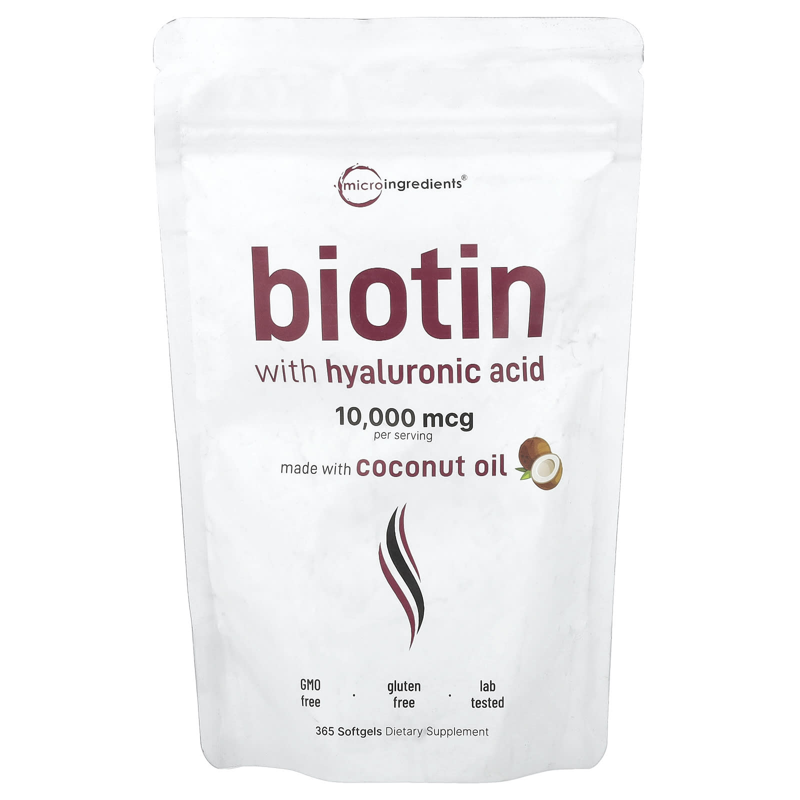 Micro Ingredients Biotina com Ácido Hialurônico 365 Cápsulas Softgel – Micro Ingredients Suplementos Cabelos, Pele e Unhas Vitamina B7 (Biotina) Ácido hialurônico.