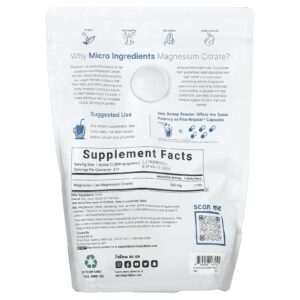 Micro Ingredients Citrato de Magnésio Sem Sabor 907 g (2 lb) – Micro Ingredients Suplementos Minerais Magnésio Citrato de Magnésio.
