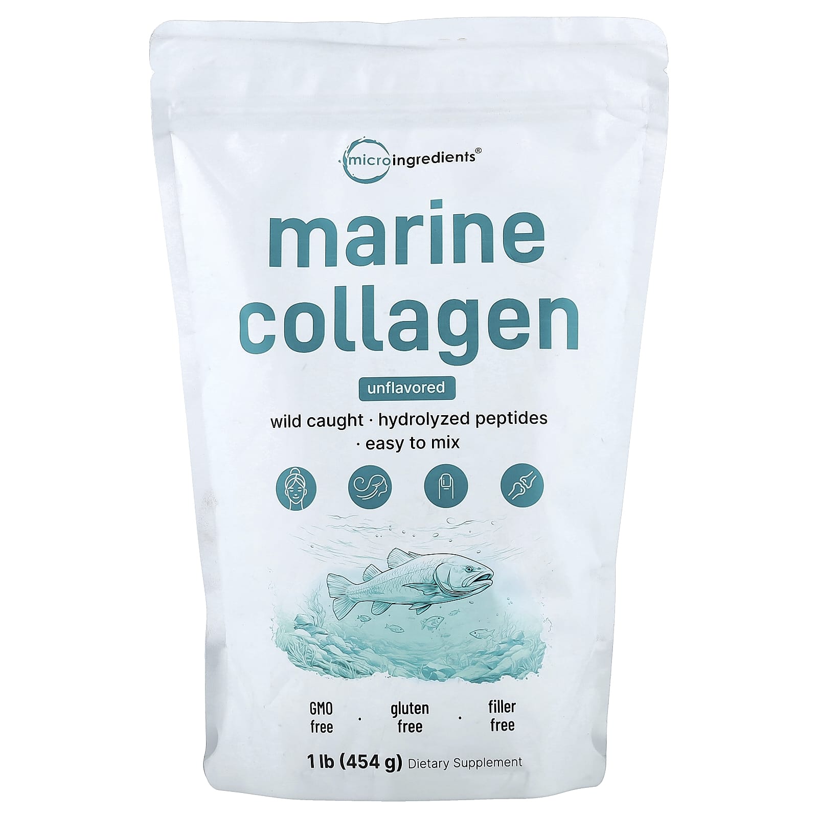 A Micro Ingredients oferece 1 lb de peptídeo de colágeno marinho em pó, 12 g de colágeno de peixe marinho puro por dose, criado com colágeno hidrolisado premium para absorção eficiente que nutre o cabelo, a pele, as unhas e as articulações.