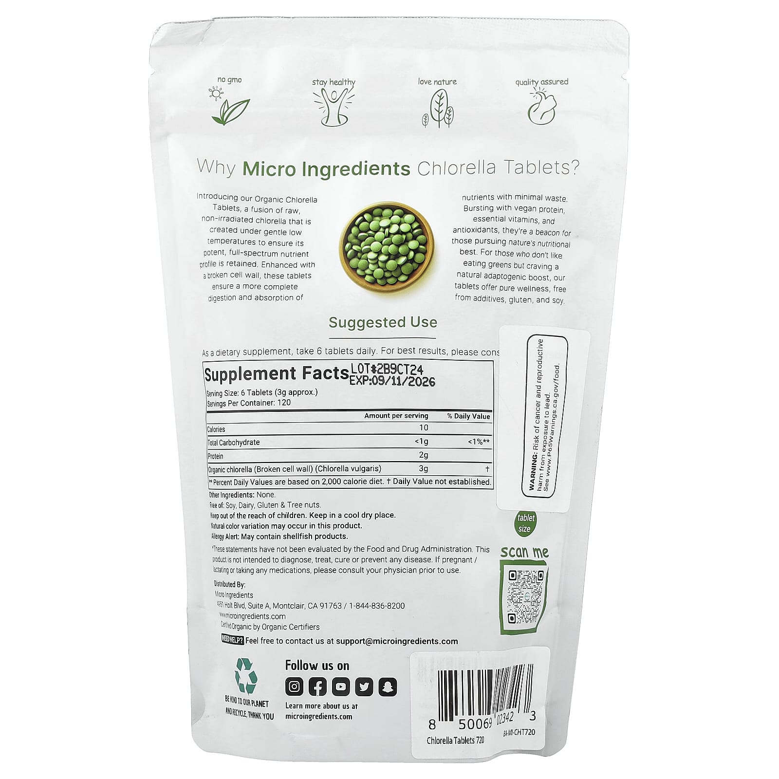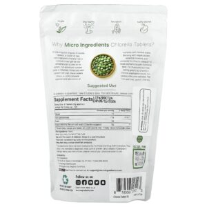 Micro Ingredients Comprimido de Clorela Orgânica 720 Comprimidos (05 g por Comprimido) – Micro Ingredients Suplementos Superalimentos Algas Chlorella.