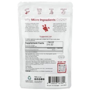 Micro Ingredients CoQ10 240 Cápsulas Softgel (100 mg por Cápsula Softgel) – Micro Ingredients Suplementos Antioxidantes Coenzima Q10 (Ubiquinona).