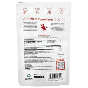 Micro Ingredients CoQ10 240 Cápsulas Softgel (50 mg por Cápsula Softgel) – Micro Ingredients Suplementos Antioxidantes Coenzima Q10 (Ubiquinona).