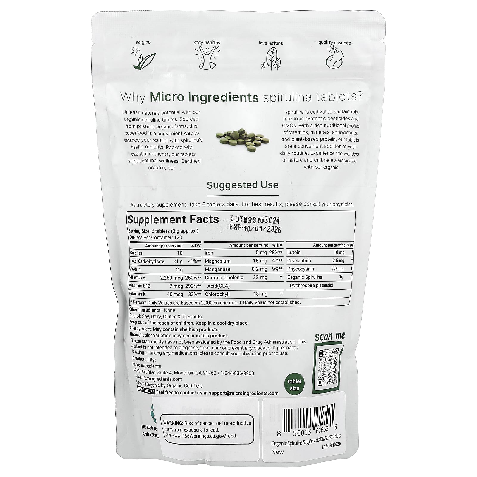 Micro Ingredients Espirulina Orgânica 720 Comprimidos – Micro Ingredients Suplementos Superalimentos Algas Espirulina.