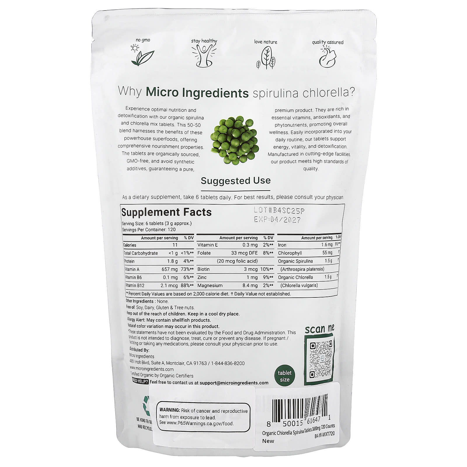 Micro Ingredients Espirulina Orgânica e Clorela 720 Comprimidos – Micro Ingredients Suplementos Superalimentos Algas Espirulina Chlorella.