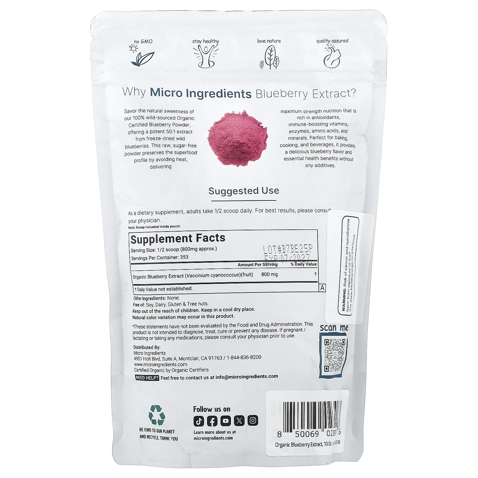 Micro Ingredients Extrato de Mirtilo Orgânico Liofilizado 283 g (10 oz) – Micro Ingredients Suplementos Ervas Suplementos de Blueberry.