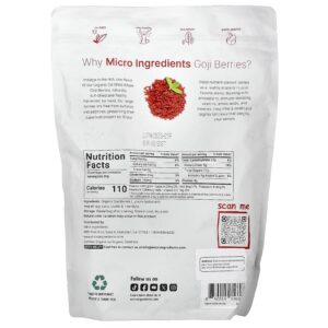 Micro Ingredients Goji Berries Orgânicos 907 g (2 lb) – Micro Ingredients Alimentos Petiscos e lanches Frutas e Legumes Secos Goji berries.
