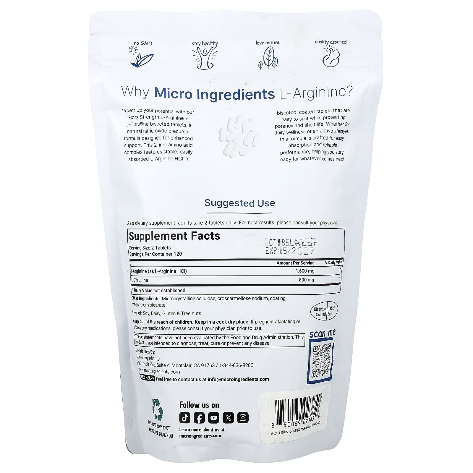 Micro Ingredients L-Arginina + L-Citrulina 240 Comprimidos Bipartidos – Micro Ingredients Suplementos Aminoácidos Misturas de aminoácidos Complexo de L-Arginina e L-Citrulina.