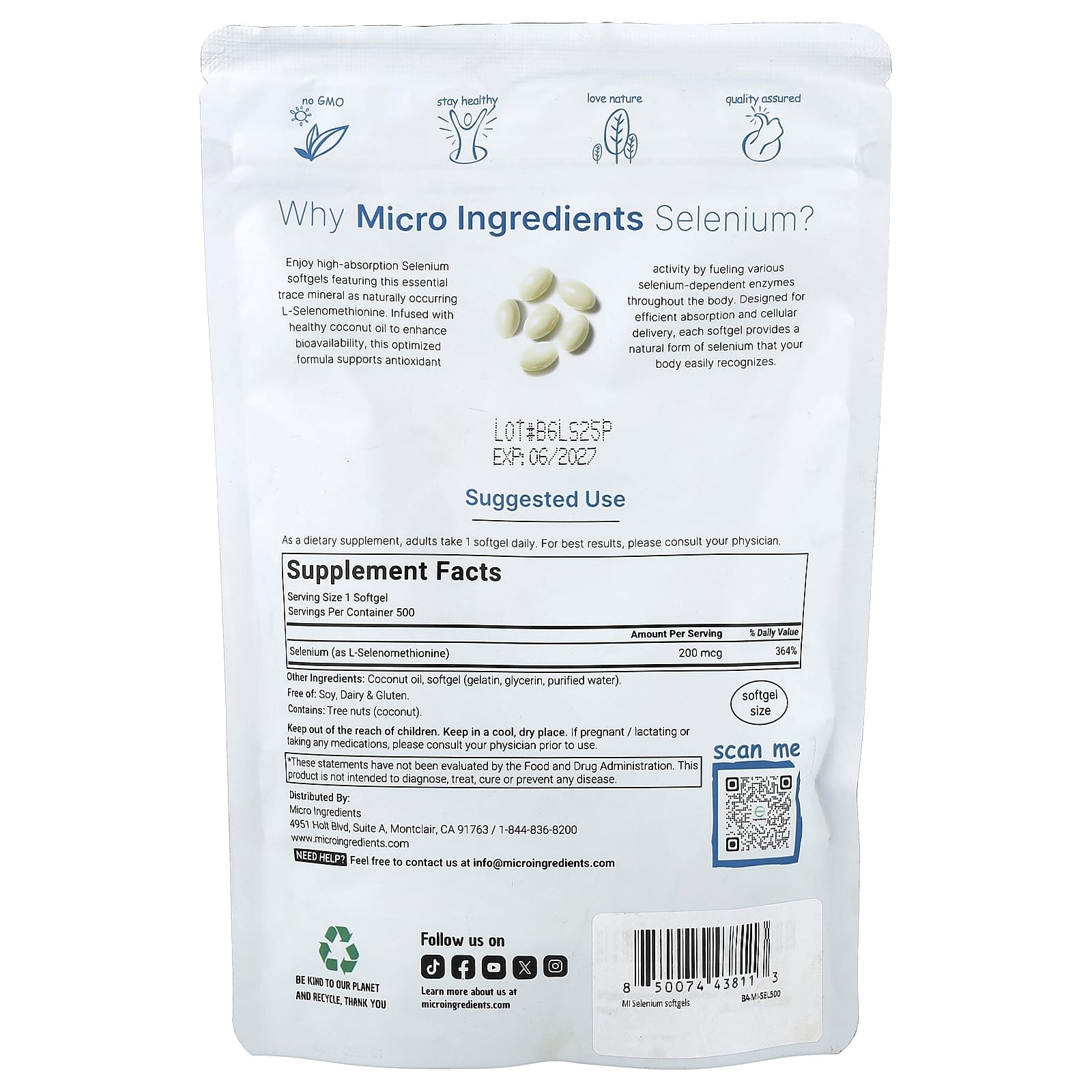 Micro Ingredients Selênio 200 mcg 500 Cápsulas Softgel – Micro Ingredients Suplementos Minerais Selênio.