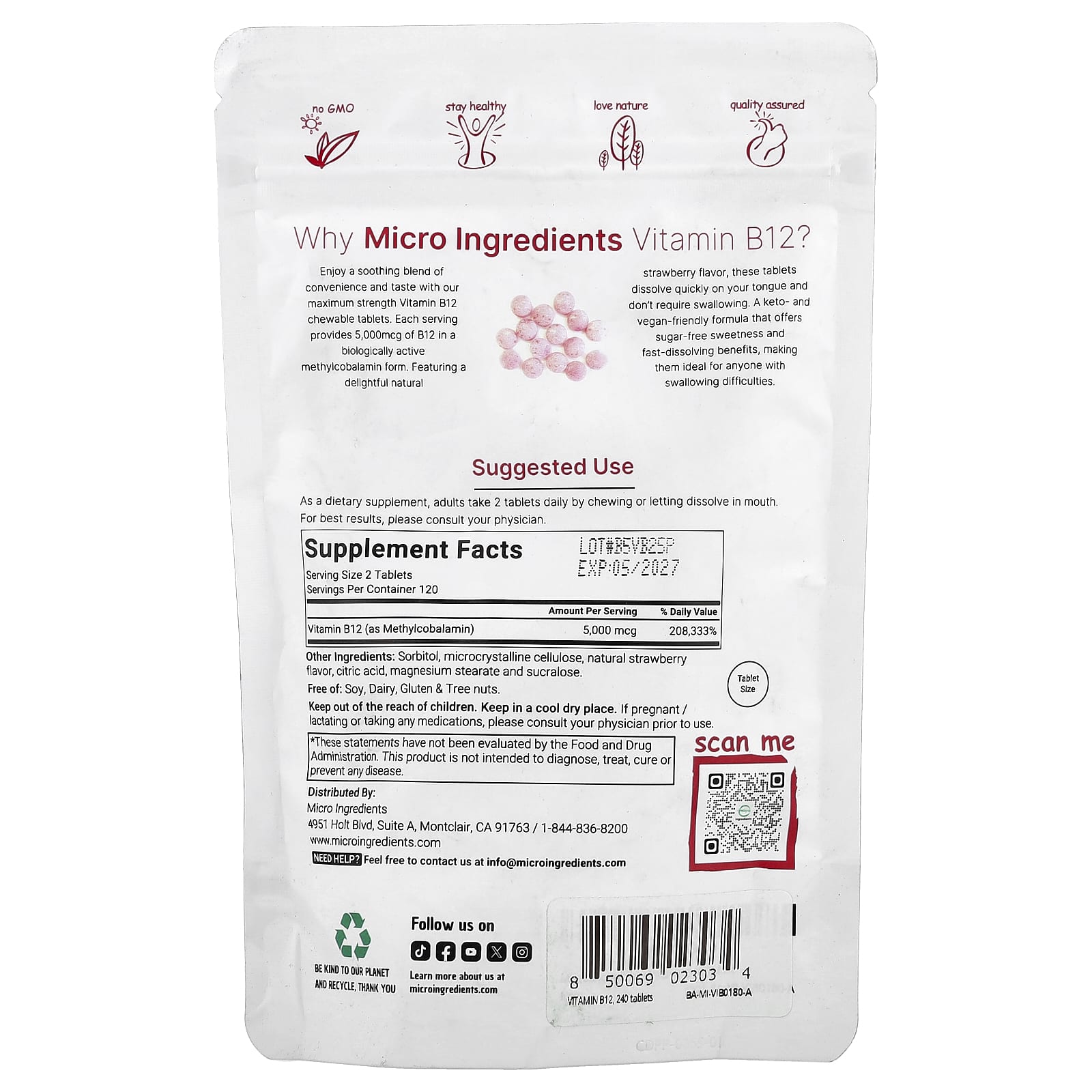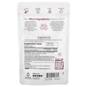 Micro Ingredients Vitamina B12 Morango 240 Comprimidos Mastigáveis (2.500 mcg por Comprimido) – Micro Ingredients Suplementos Vitamins Vitamina B Vitamina B12 (Cobalamina).