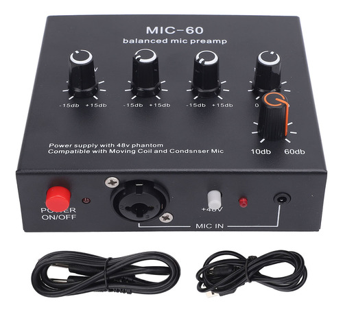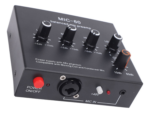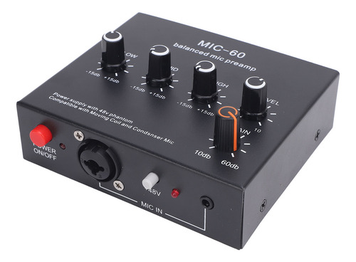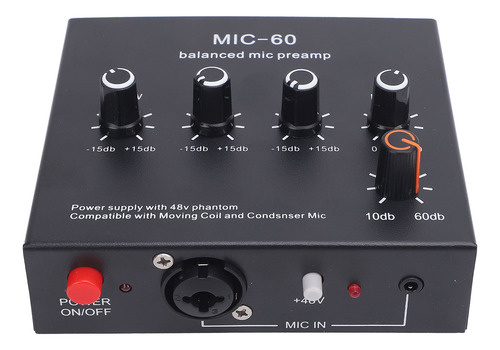 Pré-amplificador de microfone Melhore a qualidade do som Potência de 48 V, saída XLR dinâmica e amplificador de microfone condensador para estúdio de gravação.