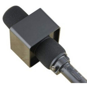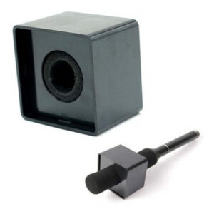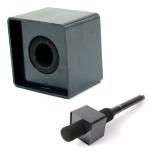 O item é uma estação de microfone portátil á em forma de cubo , principalmente de material ABS rí durável.