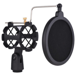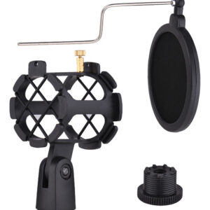 Ele se encaixa em diâmetros de 2 cm a 4 cm de espessura microfone condensador, conectado à maioria das barras ou suportes de microfone por meio de orifício de rosca de 5/8 polegadas ou universal adaptador de parafuso.