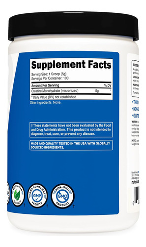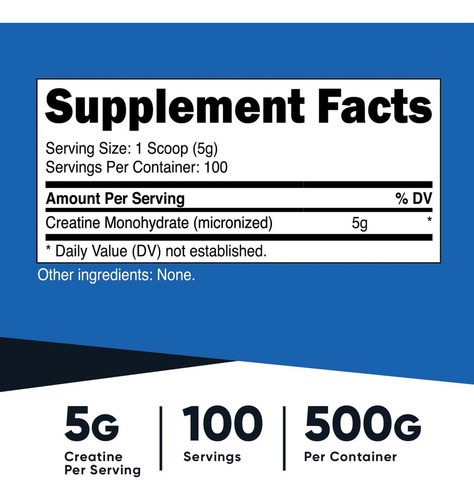 1 A creatina monohidratada micronizada de alta qualidade oferece a força e a resistência pelas quais você sempre trabalhou. Cada frasco contém 500 gramas de creatina monohidratada. Cada porção é de 5 gramas (com uma colher de medida). Nossa creatina monohidratada fornece produtos da melhor qualidade. Nossos clientes, como nós, adoram este suplemento antes e depois do treinamento.