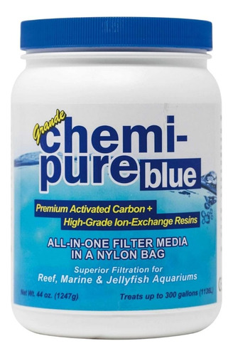 O Chemi-pure Blue é um novo meio de filtração revolucionário projetado para adsorver moléculas orgânicas nitrogenadas, juntamente com fosfatos e, até mesmo, nitratos existentes, com muito mais rapidez, eficiência e por um longo período de tempo do que outros meios de filtragem de aquário disponíveis.