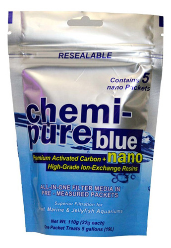 O Chemi-pure Blue é um novo meio de filtração revolucionário projetado para adsorver moléculas orgânicas nitrogenadas, juntamente com fosfatos e, até mesmo, nitratos existentes, com muito mais rapidez, eficiência e por um longo período de tempo do que outros meios de filtragem de aquário disponíveis.