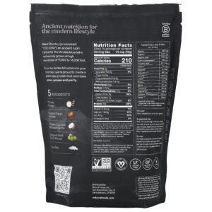 Chocho em pó, cacau orgânico em pó, néctar da flor de coco orgânico†, extrato de fruta-dos-monges orgânica, sal marinho.