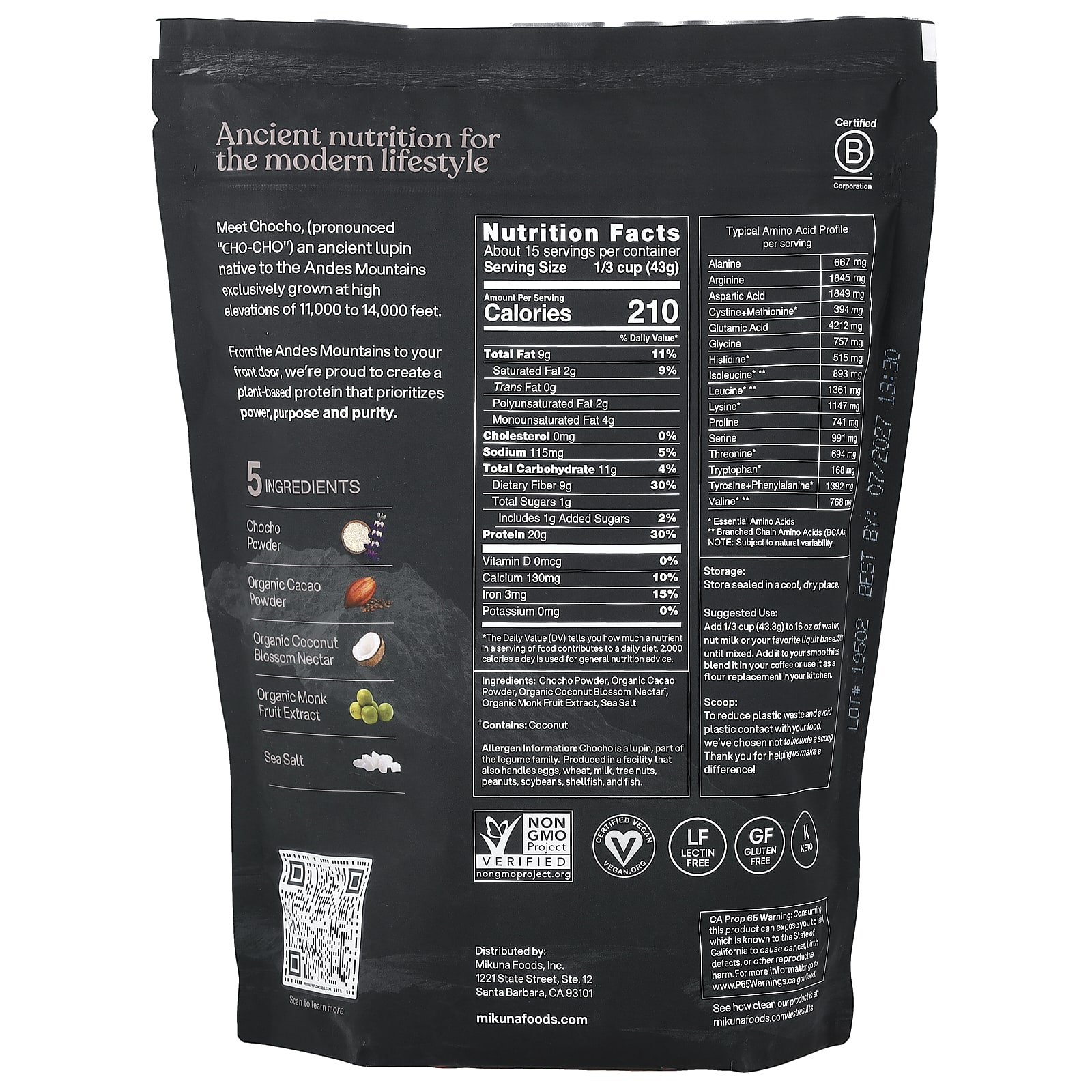 MIKUNA Proteína em Pó Chocho Plant Cacau 645 g (142 lb) – MIKUNA Nutrição Esportiva Proteína Proteína Vegetal.