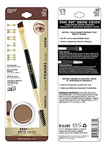 Tonalidade de sobrancelha Milani Stay Put – marrom médio (0,09 onças). Tonalidade vegana e livre de crueldade que preenche e molda as sobrancelhas.