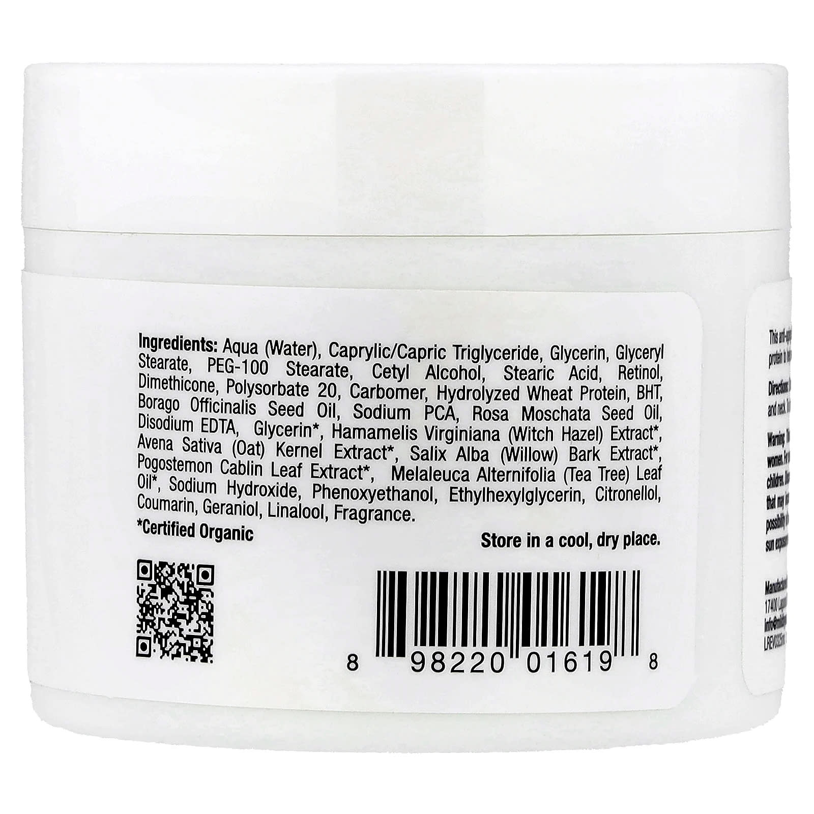 Aqua (Água), Caprylic/Capric Triglyceride, Glicerina, Monoestearato de Glicerila, Estearato de PEG-100, Álcool Cetílico, Ácido Esteárico, Retinol, Dimeticona, Polissorbato 20, Carbômero, Proteína de Trigo Hidrolisada, BHT, Óleo da Semente de Borago officinalis, Sódio PCA, Óleo da Semente de Rosa moschata, Edetato Dissódico, Glicerina*, Extrato de Hamamelis virginiana (Hamamélis)*, Extrato de Avena sativa (Aveia)*, Extrato da Casca de Salix alba (Salgueiro)*, Extrato da Folha de Pogostemon cablin*, Óleo da Folha de Melaleuca alternifolia (Melaleuca)*, Hidróxido de Sódio, Fenoxietanol, Ethylhexylglycerin, Citronellol, Cumarina, Geraniol, Linalol, Fragrância.