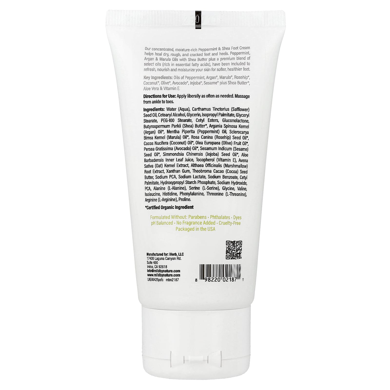 Mild By Nature Creme para os Pés Hortelã-Pimenta e Karité com Óleos de Argão e Marula 71 g (25 oz) – Mild By Nature Banho e Cuidados Pessoais Cuidados com o Corpo Cuidados com os pés Creme & Tratamentos para Pés Loção.