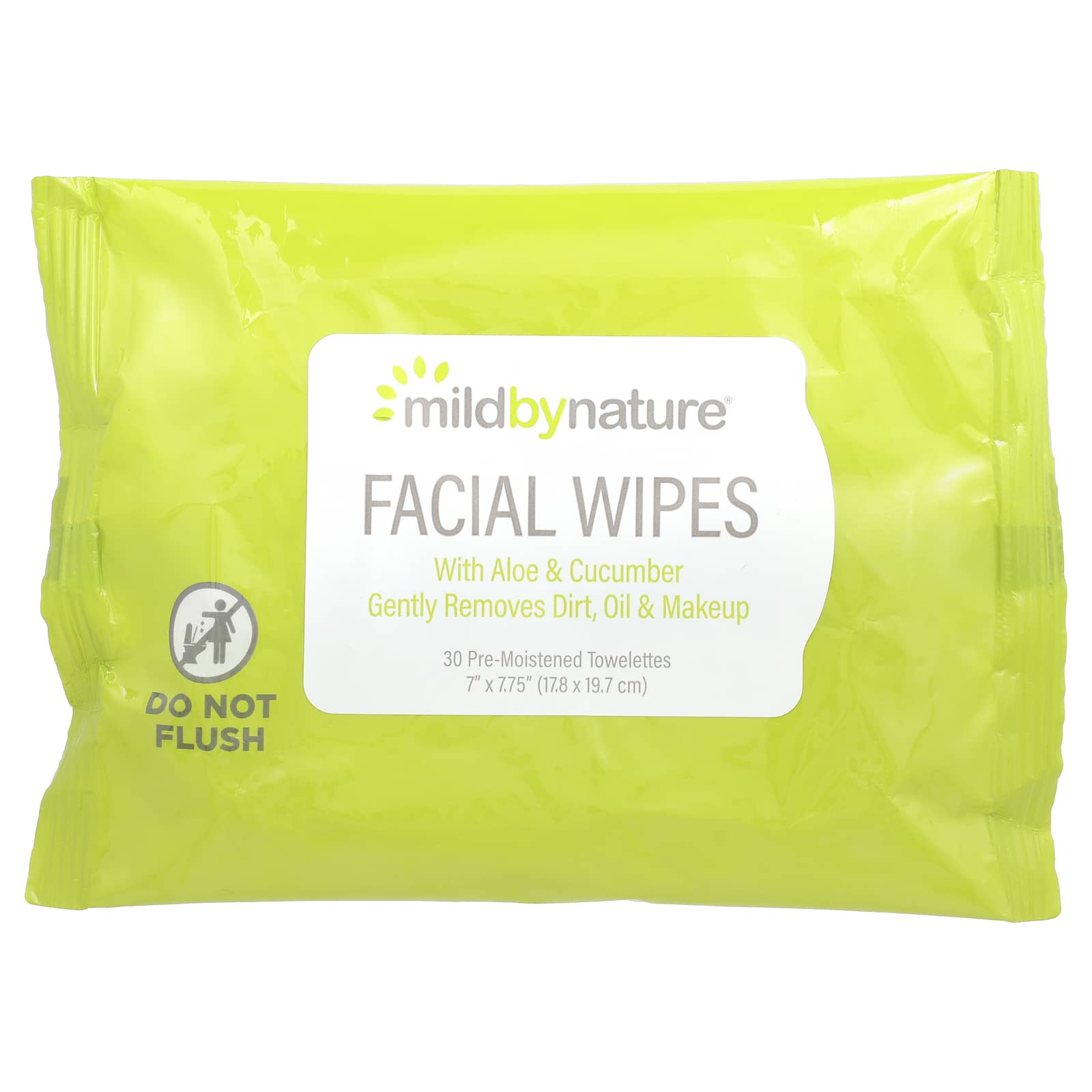 Mild By Nature Lenços Faciais de Aloe e Pepino Biodegradáveis 30 Lenços Pré-Umedecidos – Mild By Nature Beleza Limpeza Facial Lenços faciais e umedecidos Maquiagem Removedores de maquiagem.