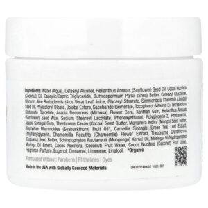 Água (aqua), Álcool Cetoestearílico, Óleo da Semente de Helianthus annuus (Girassol)*, Óleo de Cocos nucifera (Coco)*, Caprylic/Capric Triglyceride, Suco da Folha de Aloe barbadensis e Babosa*, Glicerina*, Manteiga de Karité (Butyrospermum parkii)*, Glicopiranosídeo Cetoestearílico, Monoestearato de Glicerila, Óleo da Semente de Simmondsia chinensis (Jojoba)*, Phytosteryl Oleate, Jojoba Esters, Saccharide Isomerate, Tocoferol, Fragrância (Perfume), Tetrasodium Glutamate Diacetate, Cera da Flor de Acacia decurrens (Mimosa), Goma Xantana, Cera da Semente de Helianthus annuus (Girassol), Lactilato de Estearoil Sódico, Óleo Essencial da Fruta Citrus aurantium bergamia (Bergamota), Fenoxietanol, Poliglicerina-3, Fitoesterois, Goma de Acacia catechu, Manteiga da Semente de Theobroma cacao (Cacau), Manteiga de Manga (Mangifera indica), Óleo da Fruta de Hippophae rhamnoides (Espinheiro Marítimo), Extrato de Camellia sinensis (Chá Verde)*, Ethylhexylglycerin, Extrato da Flor de Chamomilla recutita (Matricária) (Camomila), Manteiga da Semente de Theobroma grandiflorum (Cupuaçu), Óleo da Semente de Schinziophyton rautanenil (Mongongo), Ésteres de Óleo de Moringa Hidrogenado, Endosperma Líquido de Cocos nucifera (Coco), Glicerina, Ácido Cítrico, Extrato do Suco da Fruta de Cocos nucifera (Coco), Citrato de Sódio.