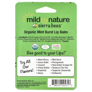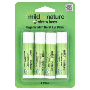 Mild By Nature Sierra Bees™ Bálsamos Labiais Orgânicos Explosão de Menta Embalagem com 4 Unidades 425 g (015 oz) Cada – Mild By Nature Cuidados Pessoais Lábios Bálsamo Labial.
