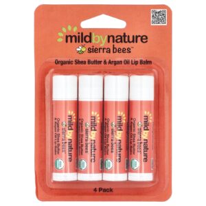Mild By Nature Sierra Bees™ Bálsamos Labiais Orgânicos Manteiga de Karité e Óleo de Argão Embalagem com 4 Unidades 425 g (015 oz) Cada – Mild By Nature Cuidados Pessoais Lábios Bálsamo Labial.