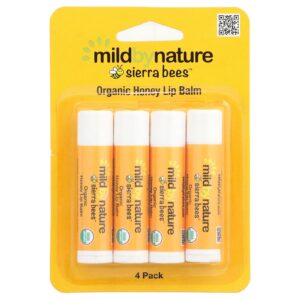 Mild By Nature Sierra Bees™ Bálsamos Labiais Orgânicos Mel Embalagem com 4 Unidades 425 g (015 oz) Cada – Mild By Nature Cuidados Pessoais Lábios Bálsamo Labial.