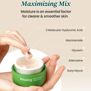 Trometamina, extrato de Centella Asiatica, extrato de folha de Rosmarinus officinalis (alecrim), etilhexilglicerina, trideceth-10, adenosina, EDTA dissódico, hialuronato de sódio, ácido hialurônico hidrolisado, informações de segurança de glicose: Evite usar este creme facial em pele ferida ou irritada. Se você sentir vermelhidão, coceira ou outras reações adversas, interrompa o uso imediatamente e consulte um profissional. Sempre verifique a data de validade antes de usar e descarte qualquer produto vencido.