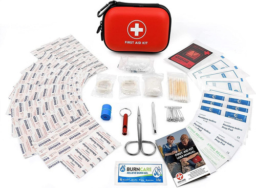 Mini First Aid Kit, 100 Pieces Water-Resistant Hard Shell Small Case – Perfect for Travel, Outdoor, Home, Office, Camping, Hiking, Car (Red) |