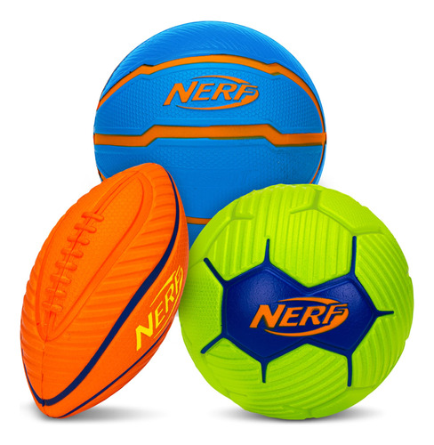 Conjunto de minibolas esportivas de espuma Nerf Kids — Conjunto de bolas de futebol, futebol e basquete de espuma macia para crianças — Conjunto de minibolas totalmente esportivas — Bolas esportivas juvenis internas e externas — Conjunto esportivo de brinquedo — Diversão para todos: pegue essas bolas esportivas de espuma Nerf para se divertir! Perfeitas para fãs de futebol, futebol e basquete. As crianças podem participar da ação – Brincadeiras macias e seguras: essas bolas de espuma macia são perfeitas para manter a hora de brincar segura e livre de hematomas, sejam usadas como brinquedos ao ar livre ou diversão em ambientes fechados – Inclui um conjunto de minibolas esportivas: este conjunto de bolas esportivas NERF vem com uma minigola de futebol, uma minibola de futebol e uma minibasquete, todas feitas de espuma durável que foi feita para durar em inúmeros jogos de futebol e muito mais – Qualidade de marca confiável: conhecido por criar brinquedos divertidos e de alta qualidade, este conjunto de mini bolas é outro sucesso, perfeito como presentes de futebol ou como brinquedos de brincar normais — Feitos para crianças: projetados pensando nos pequenos, esses brinquedos esportivos são ideais para jovens e são ótimos para brincar ao ar livre