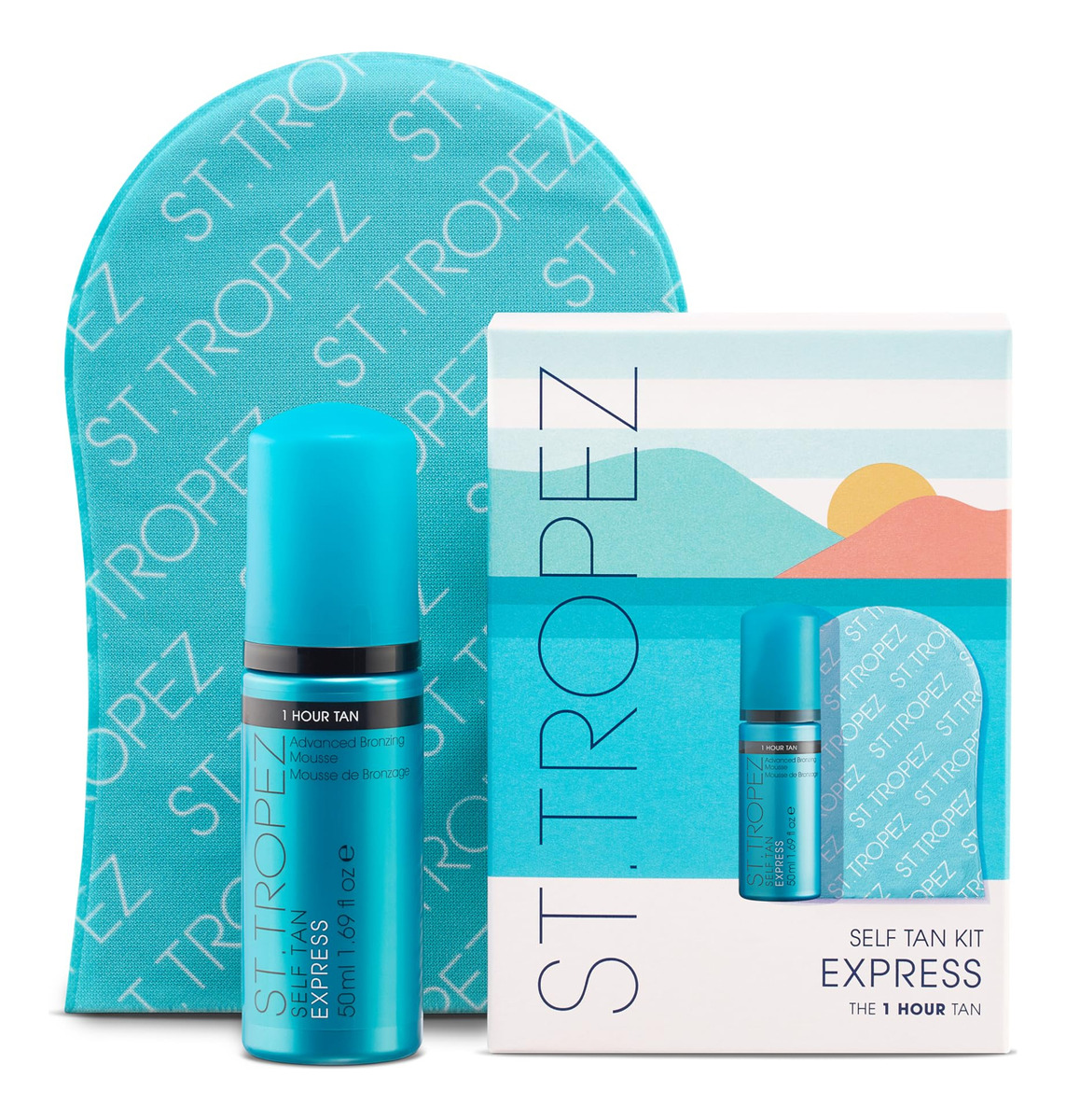Mini kit St.Tropez Self Tan Express, mousse bronzeadora e luva aplicadora de bronzeamento para viagem, bronzeador vegano, autobronzeador uniforme e natural — O minikit St.Tropez Express de 1 hora de bronzeamento é sua passagem rápida para o verão sem fim em qualquer lugar. Não importa aonde a vida o leve, nosso brilho personalizável e mais vendido fará você se bronzear em menos de 1 hora. Este kit contém nossa premiada Mousse Bronzeadora Express em um tamanho ideal para viagens e nosso aplicador de veludo Luxe para um acabamento impecável, sempre.