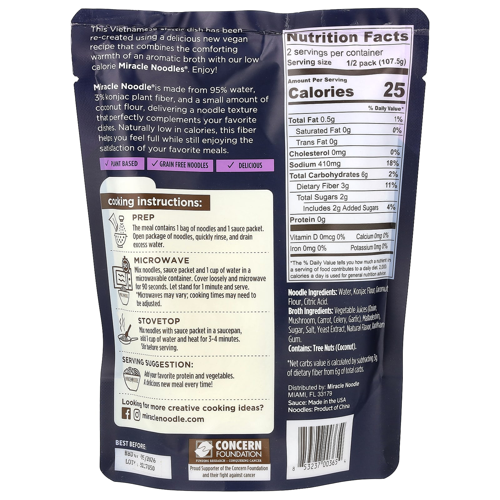 Miracle Noodle Kit de Refeições Vegana Pho Macarrão à Base de Plantas + Molho 215 g (76 oz) – Miracle Noodle Alimentos Alimentos embalados e prontos Refeições Prontas Refeições com macarrão.