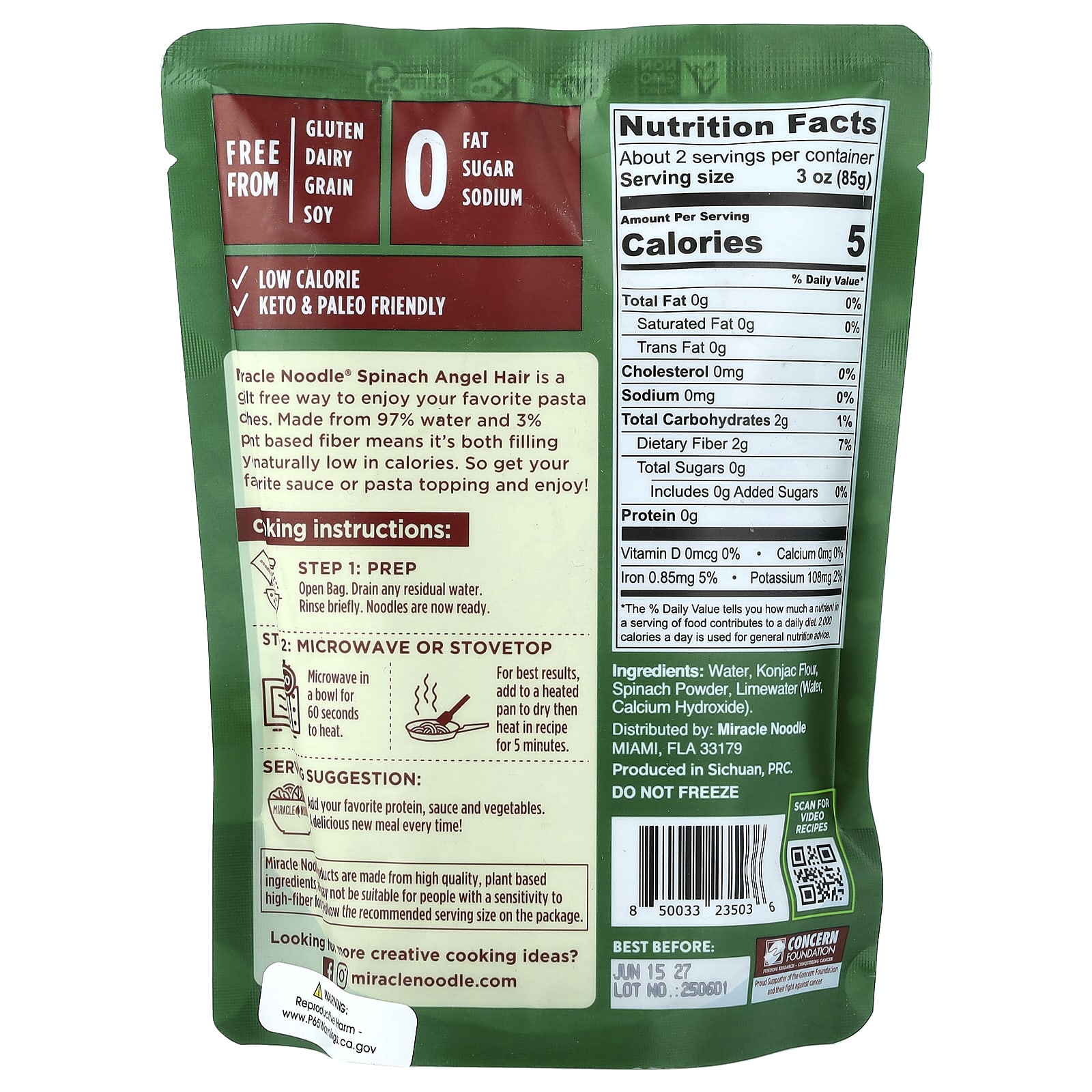 Miracle Noodle Macarrão Cabelo-de-Anjo com Espinafre 200 g (7 oz) – Miracle Noodle Alimentos Alimentos embalados e prontos Refeições Prontas Refeições com macarrão.