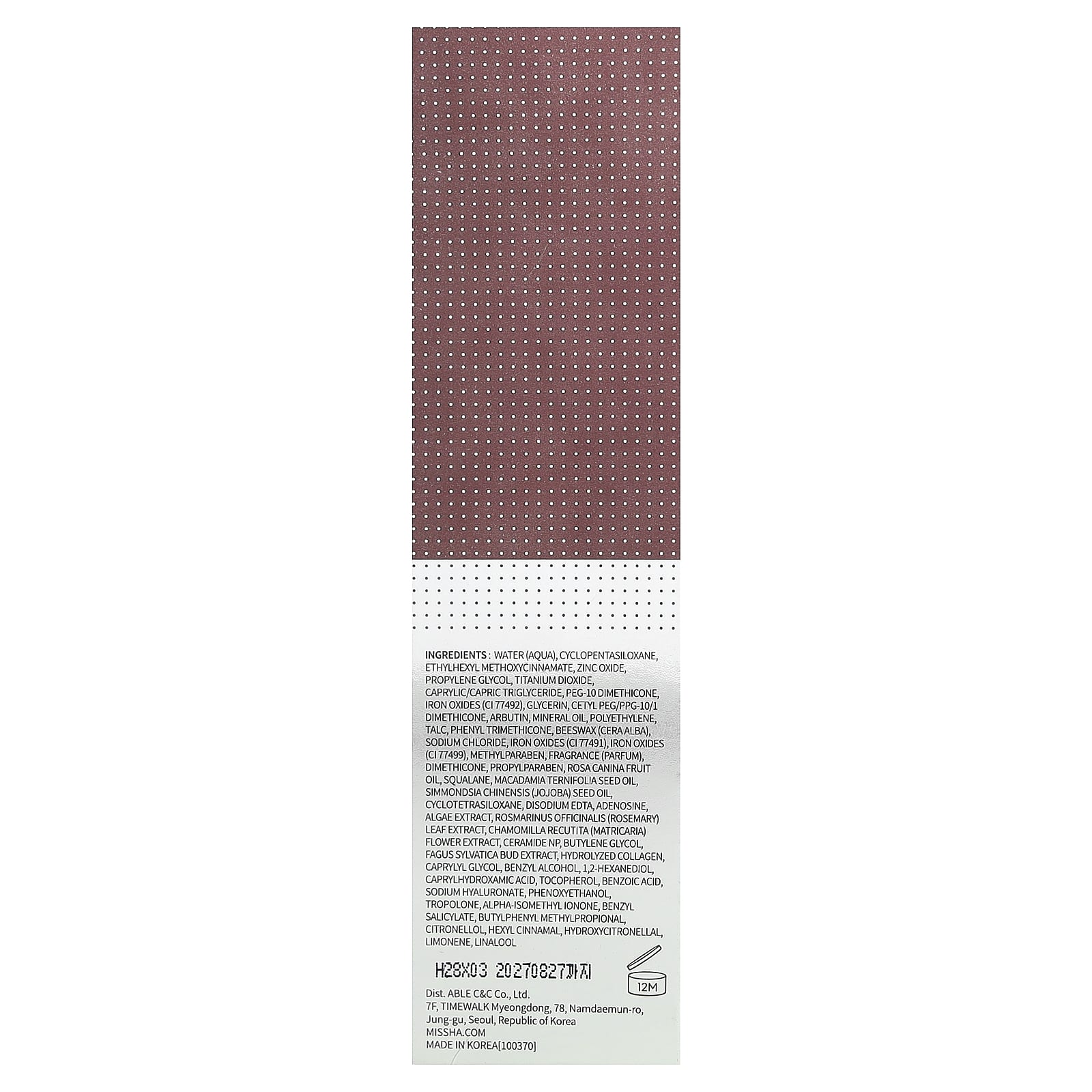 SPF (Sun Protection Factor): O SPF do produto é medido por métodos de teste da KFDA (Korea Food & Drug Administration).